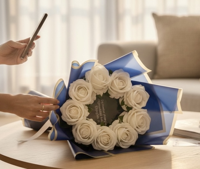 Masumiyetin ve temiz duyguların simgesi beyaz güller, modern aynalı tasarım ile buluşarak göz kamaştırıcı bir şıklık sunuyor. Beyaz Güllü Aynalı Buket, hem zarif hem de etkileyici bir hediye arayanlar için özel olarak hazırlanır.